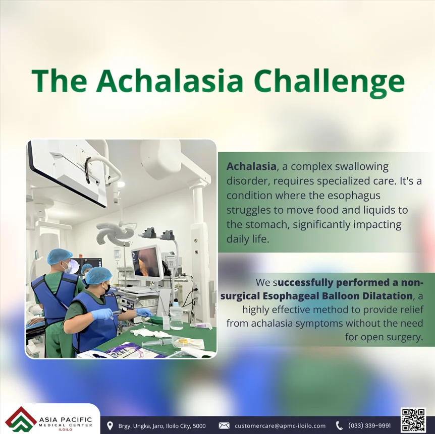 Our specialists recently performed a non-surgical Esophageal Balloon Dilatation for Achalasia, a delicate procedure that requires precision and seamless collaboration. This success underscores the specialized skills of our multidisciplinary team, including the invaluable contribution of our Gastroenterologist, Dr. Ike Minerva, Anesthesiologist, Dr. Jonee Flores, and our well-trained endoscopy nursing staff.