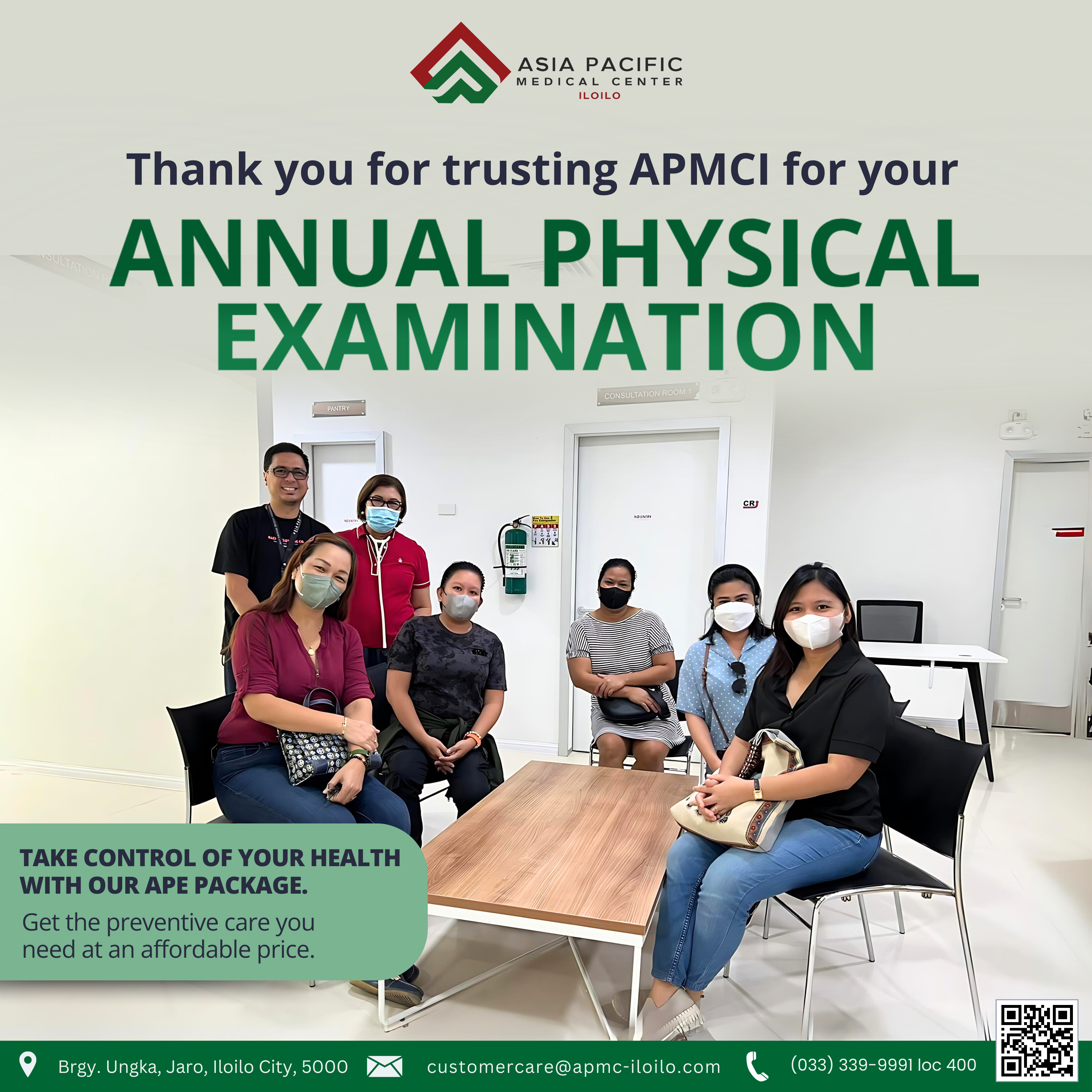 At Asia Pacific Medical Center – Iloilo, we believe that prevention is better than cure! Our Annual Physical Examination (APE) Package is designed to help you stay informed about your health, detect potential issues early and guide you on a path to long-term wellness.